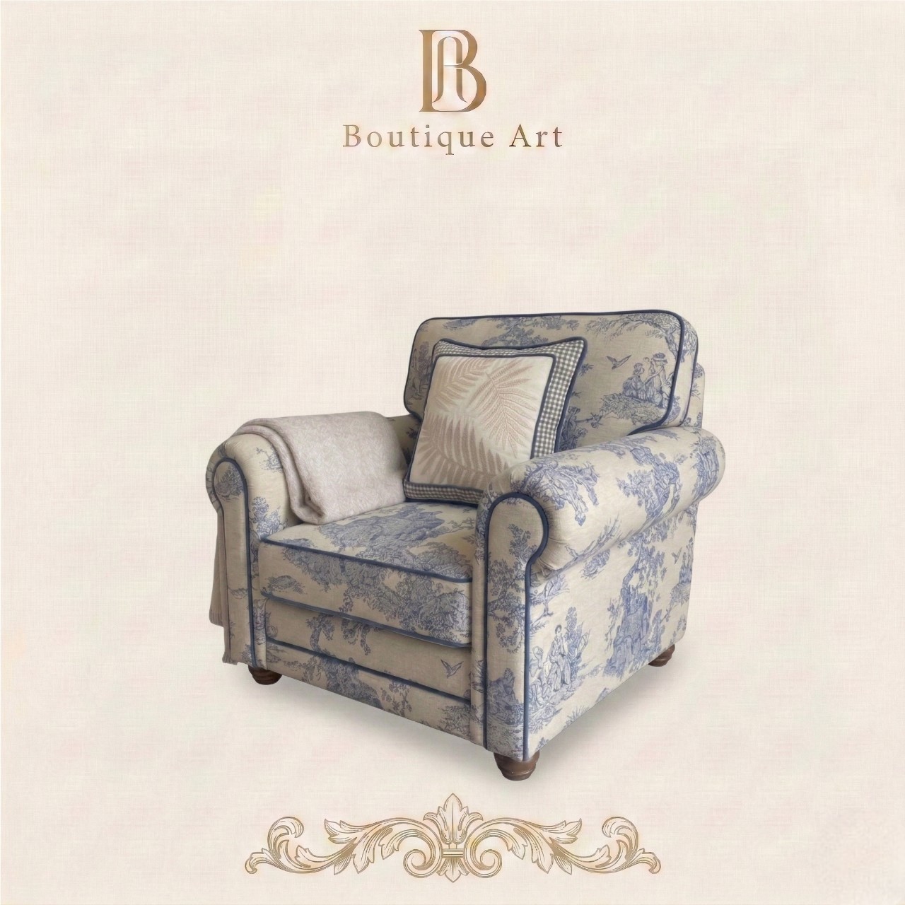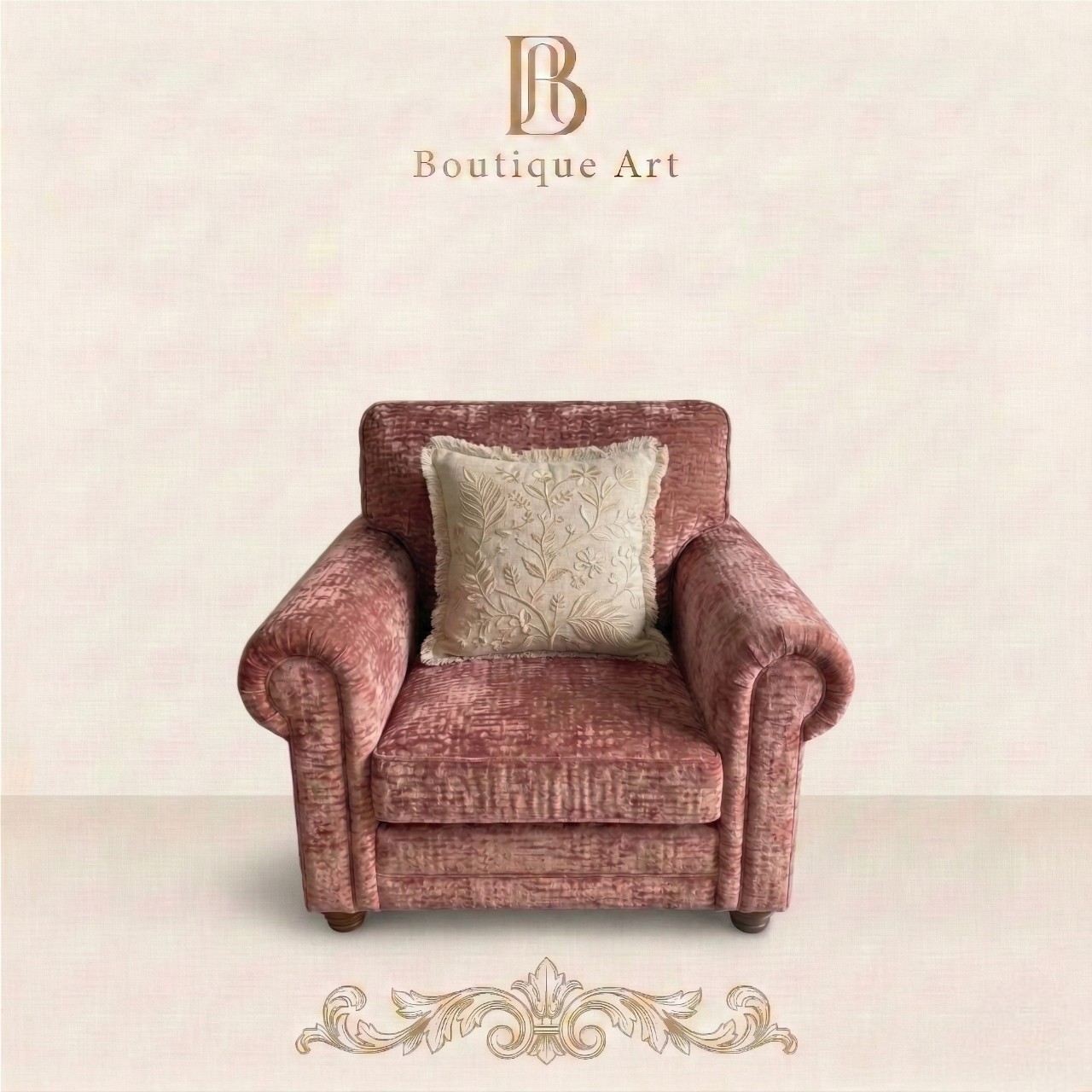 Là mẫu armchair mang vẻ đẹp tân cổ điển tinh tế, nơi sự mềm mại của đường cong kết hợp hài hòa với cảm giác sang trọng và ấm áp. Thiết kế tay vịn bo tròn đặc trưng cùng phần tựa lưng rộng tạo nên dáng ghế bề thế nhưng vẫn nhẹ nhàng và thanh lịch.